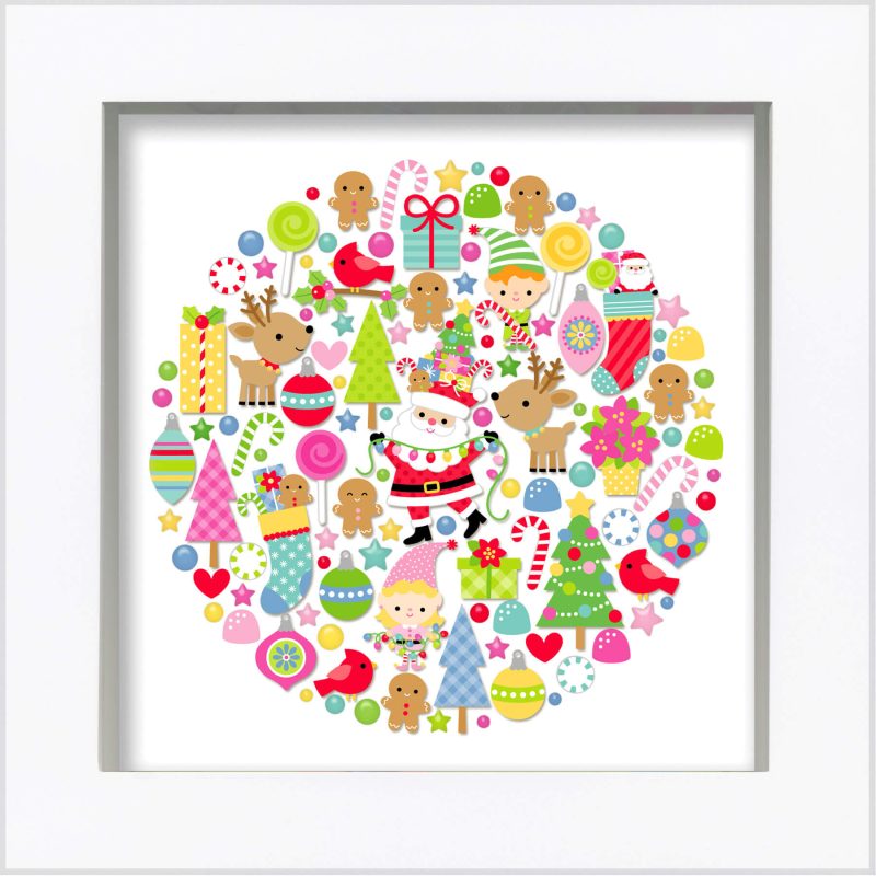 kit de artículos de la colección, que forman un diseño circular que se puede usar como decoración de un cuadro de sombra, o para otros proyectos de scrapbook.